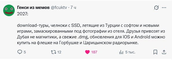 ![]() В ведомстве считают, что стоимость зарубежного трафика стоит привязать к ценам международных eSIM — это около $60 за 1 ГБ Эксперты отмечают, что при таком сценарии позволить себе VPN смогут только 20–30% пользователей, остальным придётся просто забыть про иностранные сервисы, так как обойдутся они в десятки тысяч рублей В итоге доступ к иностранным сайтам может стать отдельной платной категорией интернета, и все ради «снижения потребления запрещённых соцсетей» 0