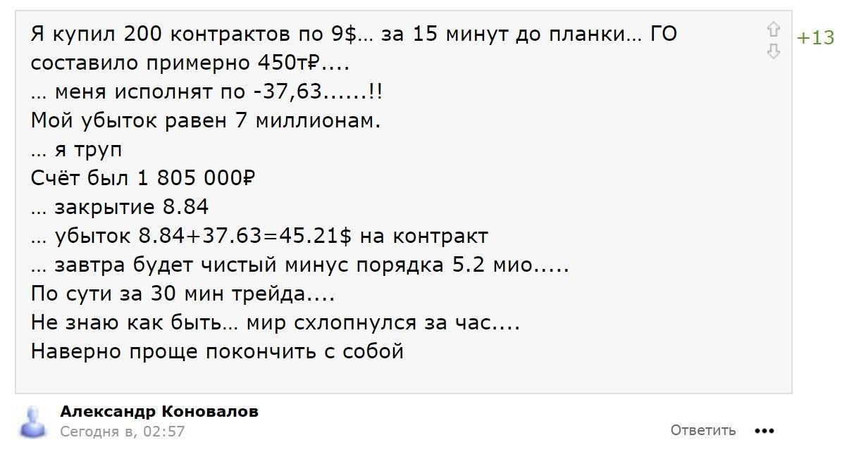 Биржа продала контракты частных трейдеров по отрицательной цене: десятки россиян обанкротились за полчаса торговБиржа продала контракты частных трейдеров по отрицательной цене: десятки россиян обанкротились за полчаса торгов23 Апреля 2020