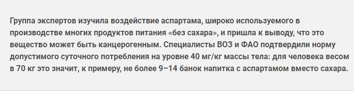 Крупнейшие российские производители сладкой газировки перешли на «ракообразующий» аспартамКрупнейшие российские производители сладкой газировки перешли на «ракообразующий» аспартам18 Октября 2023