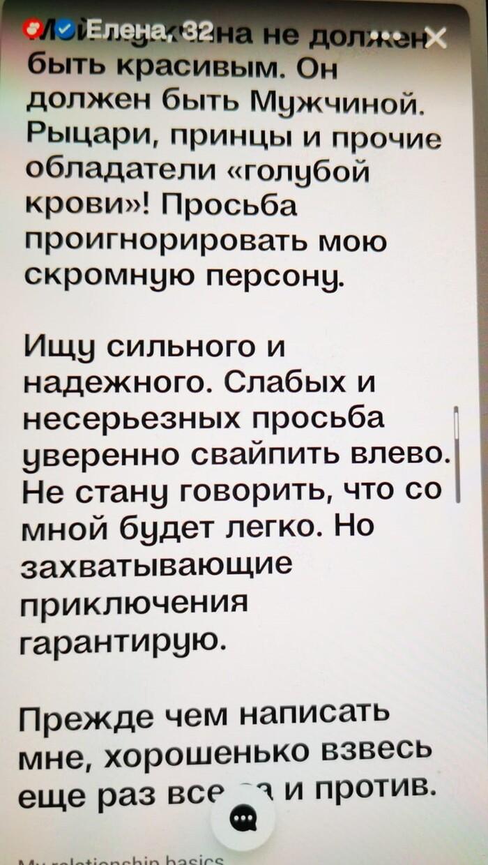 Являюсь признанным экспертом по версии дабльюэнбиси, и опытным пользователем всех сайтов знакомств, начиная с прошлого тысячелетия. Первые мои знакомства в сети были еще в аське, а последние сегодня утром, сидя в туалете. Тарелочниц вижу по первым буквам анкеты, а ботов определяю по фотографии. Цель поста – сэкономить время юным, неопытным пользователям, и подсветить категории баб, с которыми не выйдет ничего хорошего.