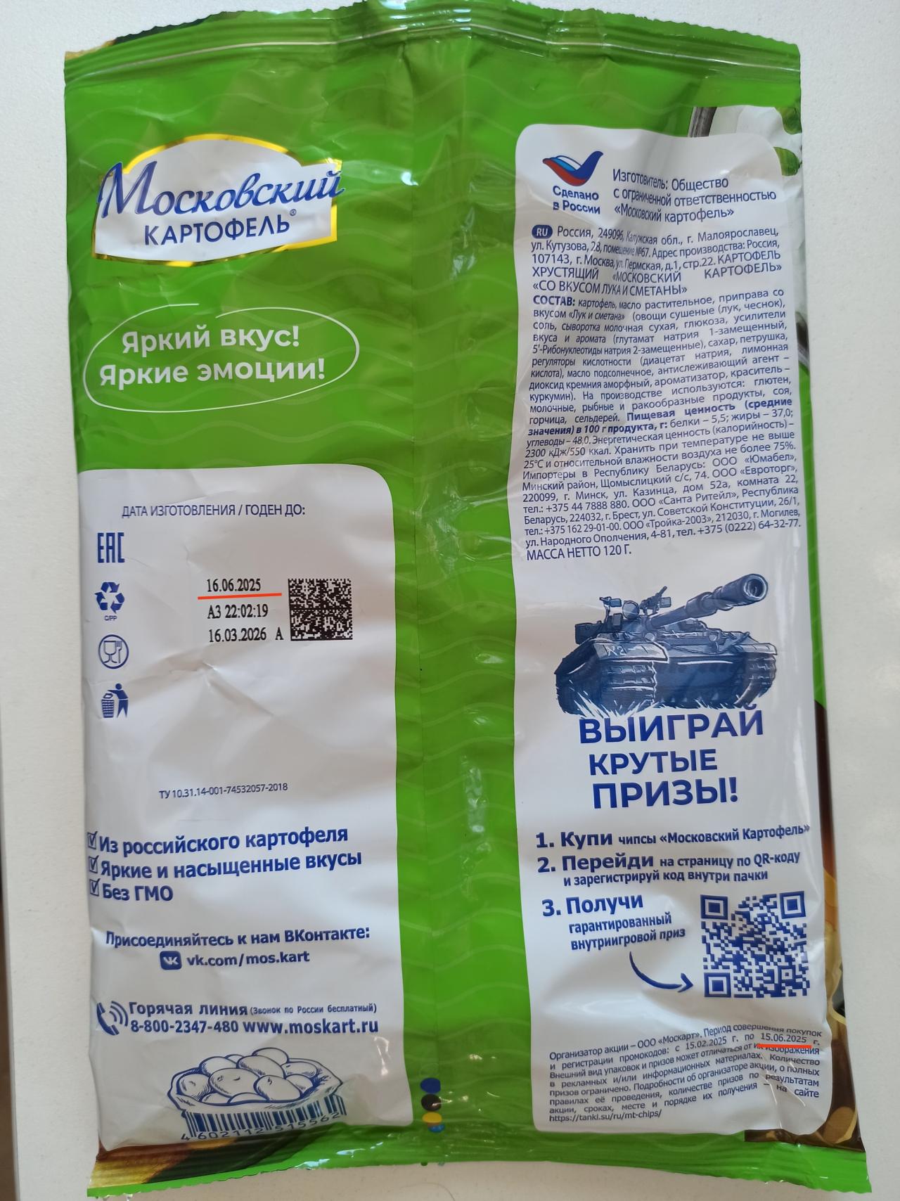 А тут иду мимо полок в магазине (а я в магазинах полгода не была, не до того было) и смотрю стоят чипсы, а на них акция с гарантированными призами в "Мире танков". Я их хвать, думаю порадую мужа, может там стиль какой на танк дадут или еще что-нибудь приятное. Ну и самой тоже интересно, что там. Новогодние-то коробки мы всегда вместе открываем по одной и ждем, когда премиум танк выпадет. Пачку вскрыли, а там только часть кода есть. Ошибка на производстве упаковки: то ли не там код напечатали, то ли не так пачку обрезали (внизу пачки кусок следующего кода торчит). Ну думаю, ничего страшного, напишу производителю, может решится проблема. Начала читать условия акции, а там: Дата изготовления: 16.06.2025. Регистрация промокодов до: 15.06.2025. 1