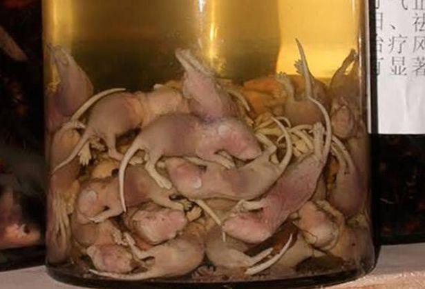 Вино, любимый напиток милых дам. Всем известно, что оно бывает разным: красное, белое, разовое, сладкое, полусладкое и так далее. Изготовление вина тоже всем известно, виноград бродит, настаивается и еще много действий. Но вот что интересно, вы бы стали пить или пробовать вино, которое делается, внимание из мышей?! Оказывается, что в Азии уже давно практикуют и изготавливают вино из новорожденных мышей. В Китае и Корее это вино считается традиционным, они называют его "эликсир здоровья". Приготовить такое вино не сложно, если захотите, можете сами сделать дома. Рецепт очень прост: только что рожденных мышат помещают еще живыми в стеклянную бутылку с рисовым вином. Оставьте бутылку с мышами на 7 дней для того чтобы вино настоялось, и все напиток готов. Важно только чтобы мышатам не было больше 3 дней, они голые, без шерсти, поэтому его не надо фильтровать, вино получается прозрачным и без осадка. Употребляя такое вино, Китайцы верят, что излечатся от все болезней, поэтому они его и назвали " эликсир здоровья". Но пить стаканами, ни в коем случае нельзя, можно умереть. Основное его использование это лечение импотенции у мужчин, и крепость такого напитка, составляет 40-55 градусов. 0