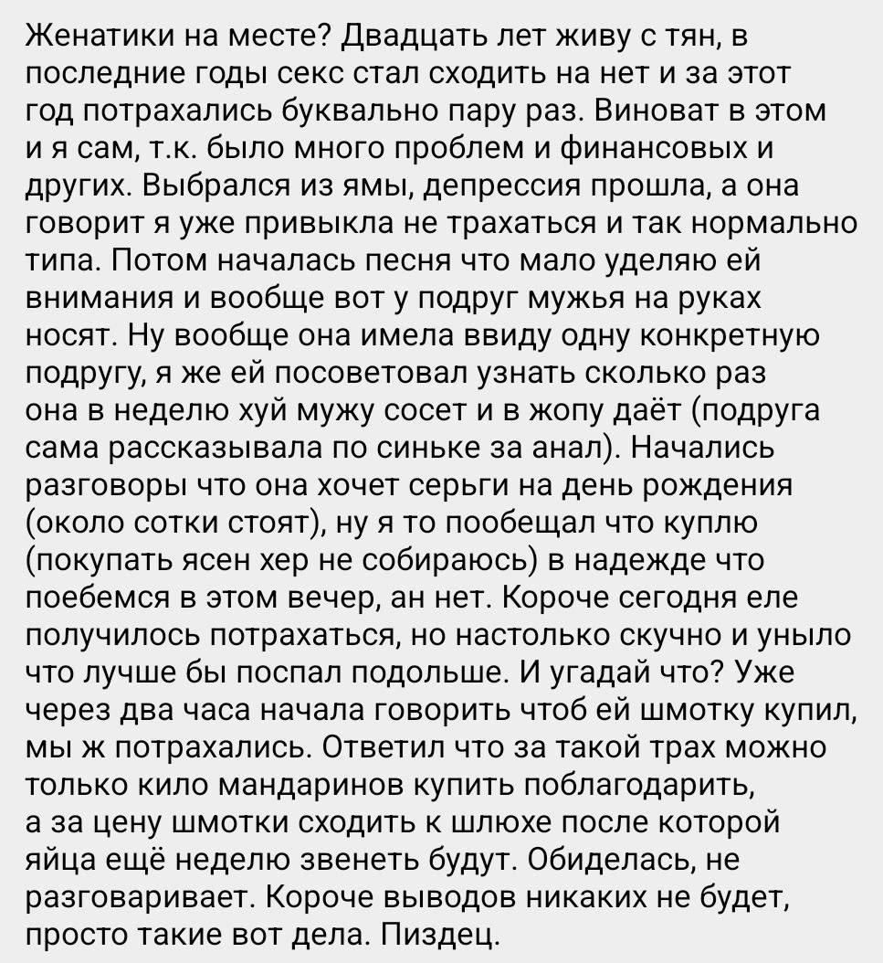 Или просто он пиздун и ему девки не дают, а он воображаемую жыну во всем абвиняет. Бггггг. Остапа понесло.