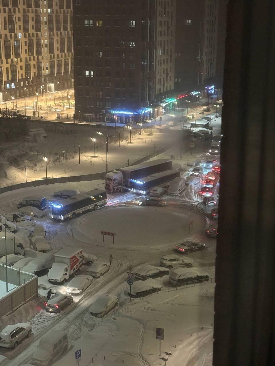 Многие остановки заняты машинами, пассажиров высаживают прямо на проезжую часть Некоторые дороги сузились до одной полосы — коммунальщики просто не убрали снег