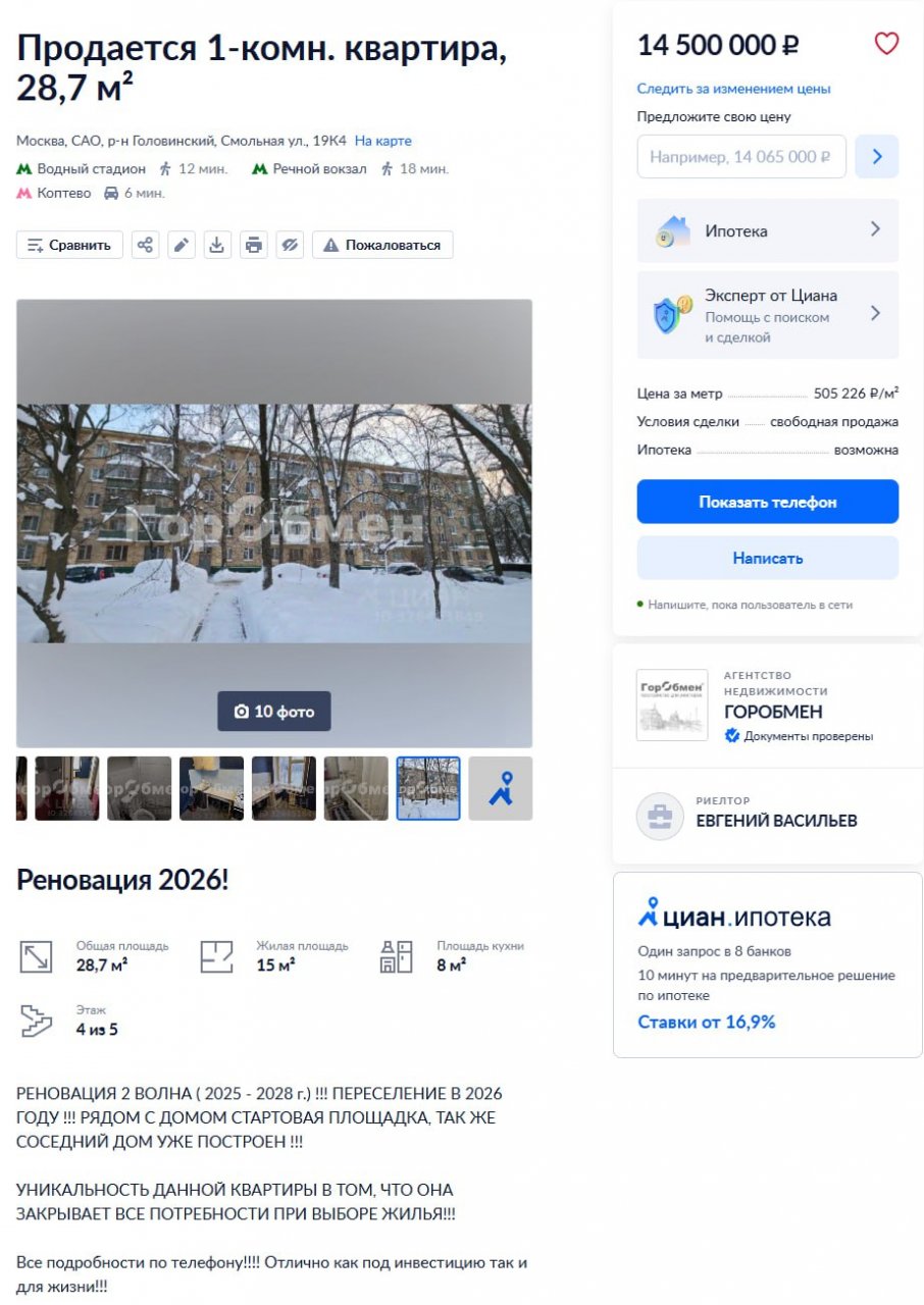 так цена не за эту залупу, а то что рядом строится взамен