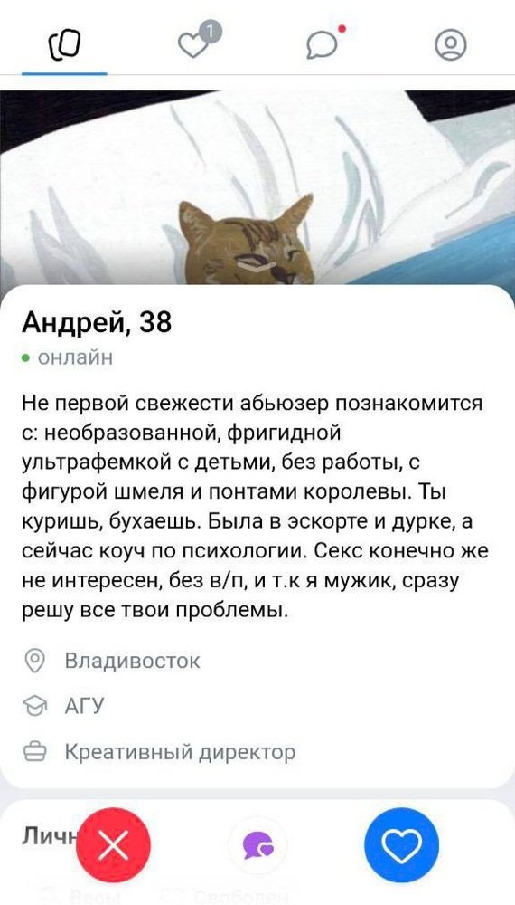 питирский "Влад, 27" ваще красавчег.. знает шо искать на сайтах знакомств..
