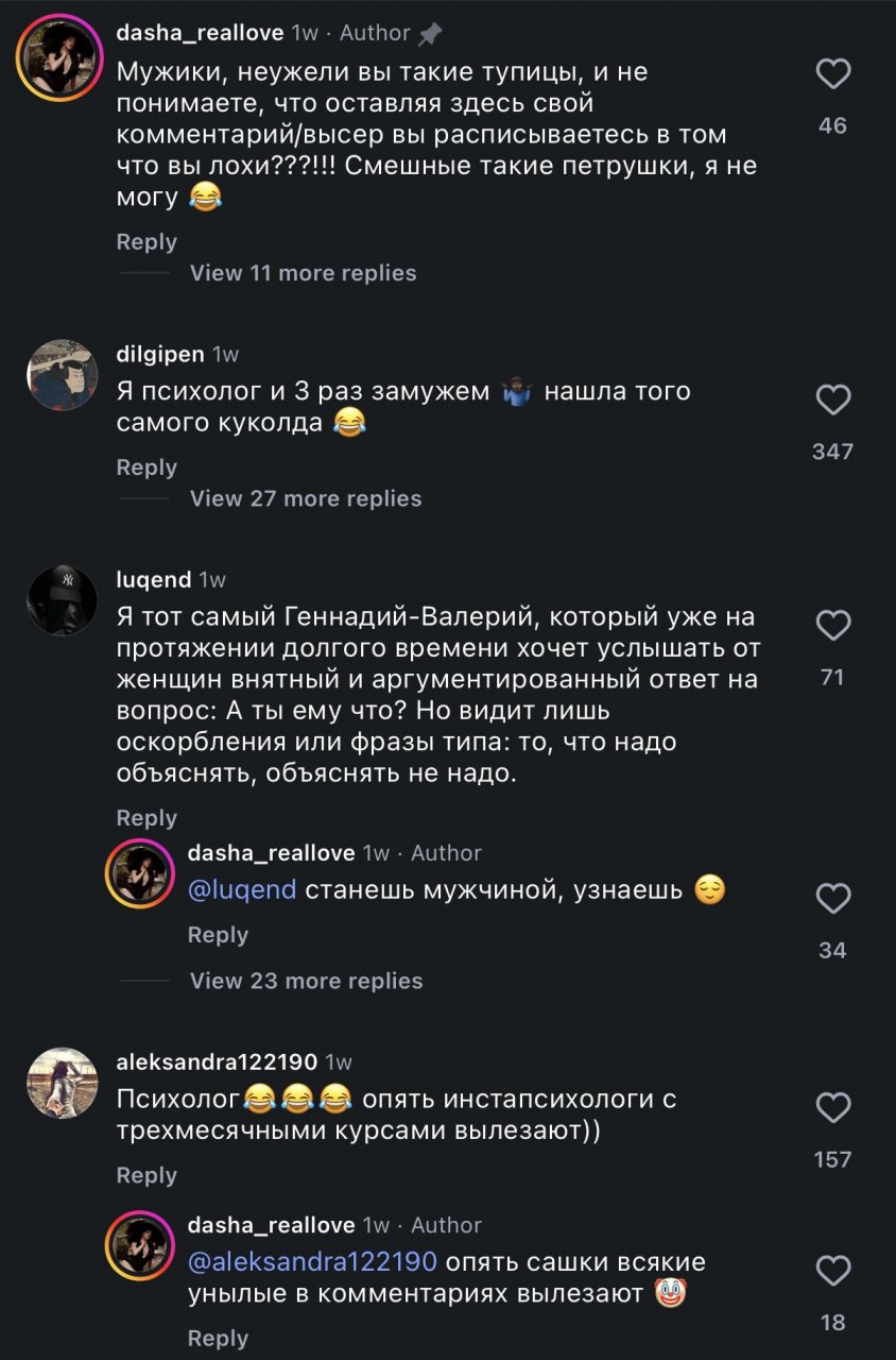 ну что тут скажешь. видали мы и не таких куколдов. какждой твари по паре. или каждой тваре по харе ))) вот нахуя народ коменторезку там уцстроил. и, дейстивтельно, зачем там еще и мужчины коменты оставляют, гордости и ума совсем нет. такую хуйню надо обходить стороной, а нет, они наступили в гавно, а потом в сердцах еще и расхуярили кучу говна новыми кедами, измазавшись в дерьме по макушку. неужели не понятно, что подобный контент создается с одной целью: просмотры, реакции, коменты ---> бабло от площадки. ебанутые, идите лучше Савльева, или Дробышевского смотреть, это интереснее и познавательнее.