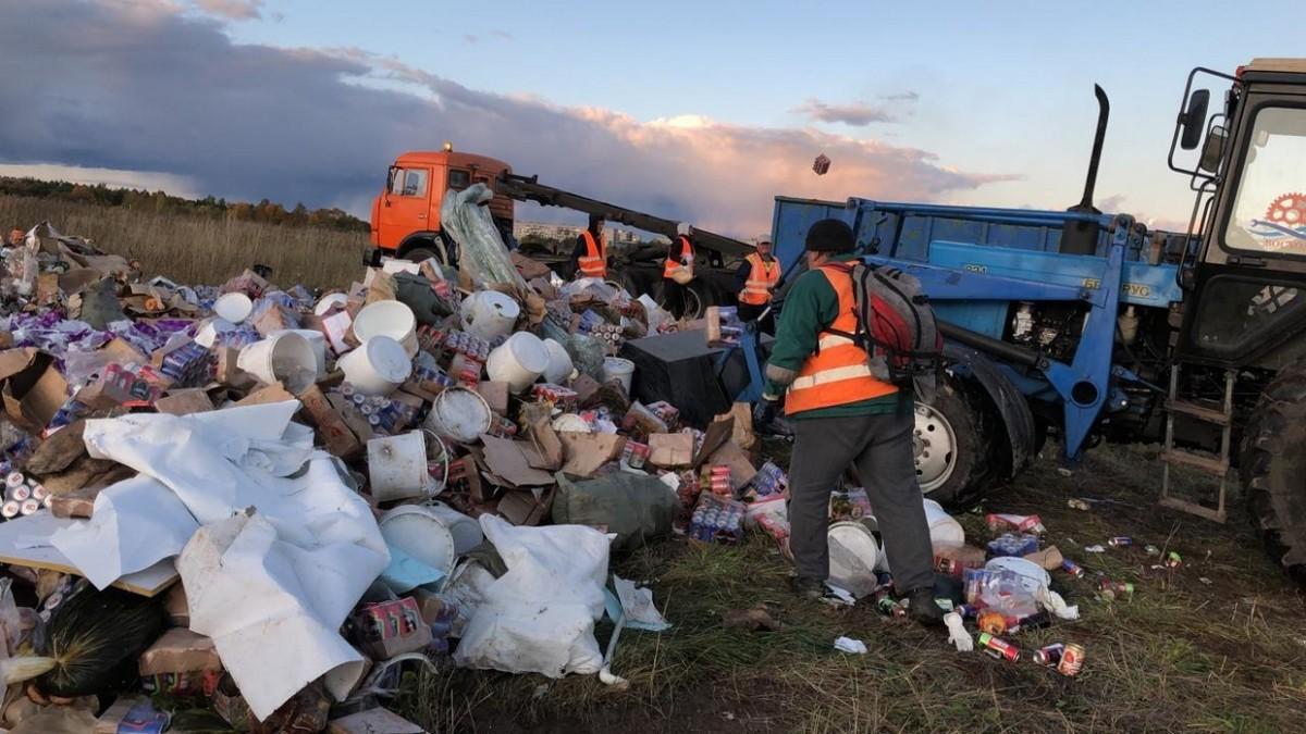 В Ленинградской области в чистом поле какие-то подлецы вывернули из самосвалов несколько тонн просроченного алкоголя. В основном это пиво с вкраплениями энергетиков и прочих веселящих жидкостей. Обнаружена эта свалка была днем 20 сентября местными жителями, которые с большим негодованием начали расчищать её, растаскивая бухлишко ящиками. Позже начали подтягиваться волонтеры из числа маргиналов соседних деревень. И утащили бы всё, однако вмешались местные власти, которые прислали рабочих с трактором. Рабочие тоже пополнили свои личные запасы, после чего начали перегружать оставшийся алкоголь в контейнеры.