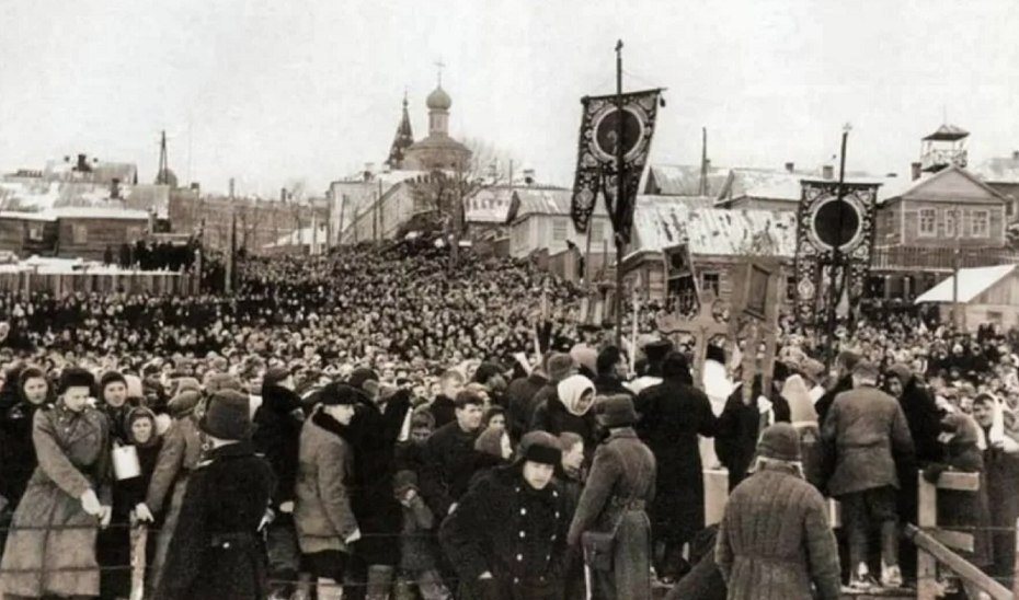 Крестный ход и крещенские купания в Саратове, РСФСР, январь 1949 года.Крестный ход и крещенские купания в Саратове, РСФСР, январь 1949 года.19 Января
