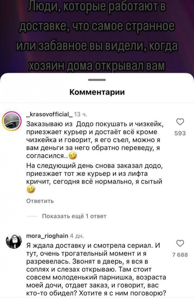 То, что эта схема работает, подтвердили и другие девушки, в том числе из другого сервиса доставки еды — DoorDash. Она тоже увеличила свой доход, когда стала фотографировать ноги вместе с едой. Чаевые могут составлять в районе $50 (3700₽). Просто истории из жизни курьеров и их заказчиковПросто истории из жизни курьеров и их заказчиков13 Июня 2024