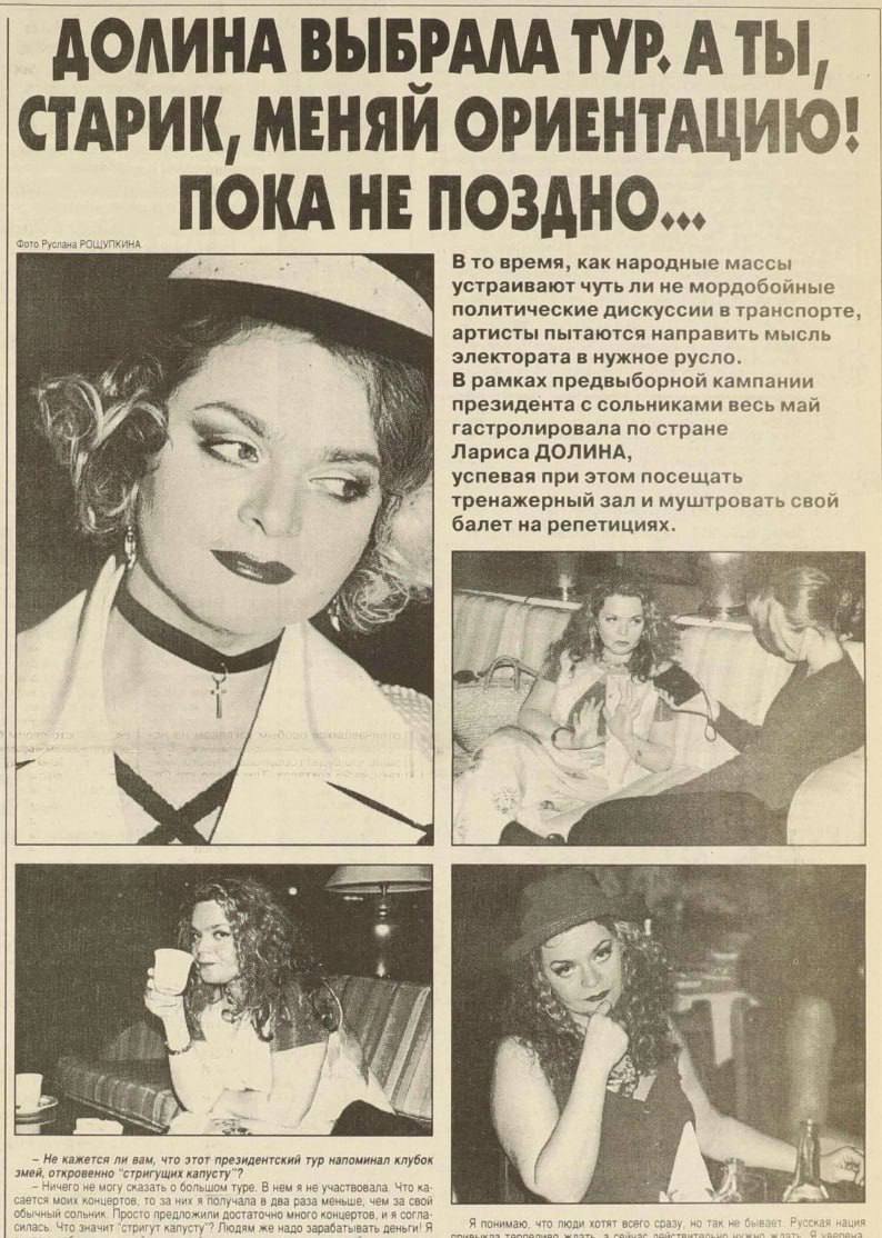 Перед вторым туром Президентских выборов 1996 года Лариса Долина призывала голосовать за Бориса Ельцина – в случае победы Геннадия Зюганова певица опасалась лишиться своей квартиры:
