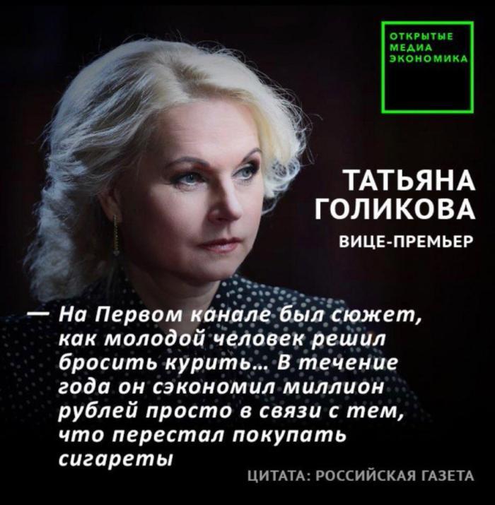 Вот это я понимаю дельный совет от толкового экономиста. А то биржи, макроэкономика, инвестиции, налоги какие–то.... Голова пухнет. Взять, да и бросить курить, и сберечь 2700 рублей в день. И через год с небольшим ходите в миллионерах. Как вам такое? Что? Вы не курите? Ну так начните, а потом бросьте. |